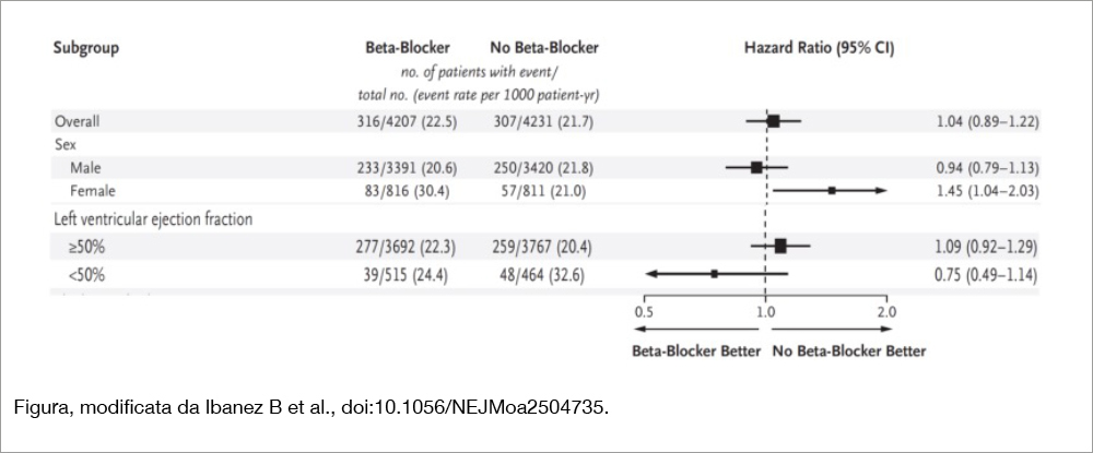 La terapia betabloccante è chiaramente indicata nei pazienti con infarto miocardico (MI) e FE <40%, per i quali vi è una forte raccomandazione delle linee guida[1]Byrne RA, Rossello X, Coughlan JJ, et al. 2023 ESC guidelines for the management of acute coronary syndromes. Eur Heart J 2023;44:3720-826. Più controverso, invece, il suo utilizzo nei pazienti che, dopo un MI, hanno una FE conservata (≥50%) oppure moderatamente depressa (40-49 %) in quanto gli studi in proposito sono stati eseguiti in era pre-riperfusiva[2]Hjalmarson A, Herlitz J, Holmberg S, et al. The Göteborg metoprolol trial: effects on mortality and morbidity in acute myocardial infarction. Circulation 1983;67:I26-I32 e non applicabili alla realtà clinica attuale. Al congresso ESC del 2025 sono stati presentati nuovi dati che possono permettere di gettare una nuova luce su questa problematica. Qui, presentiamo tre contributi che offrono nuove evidenze sull’argomento.
